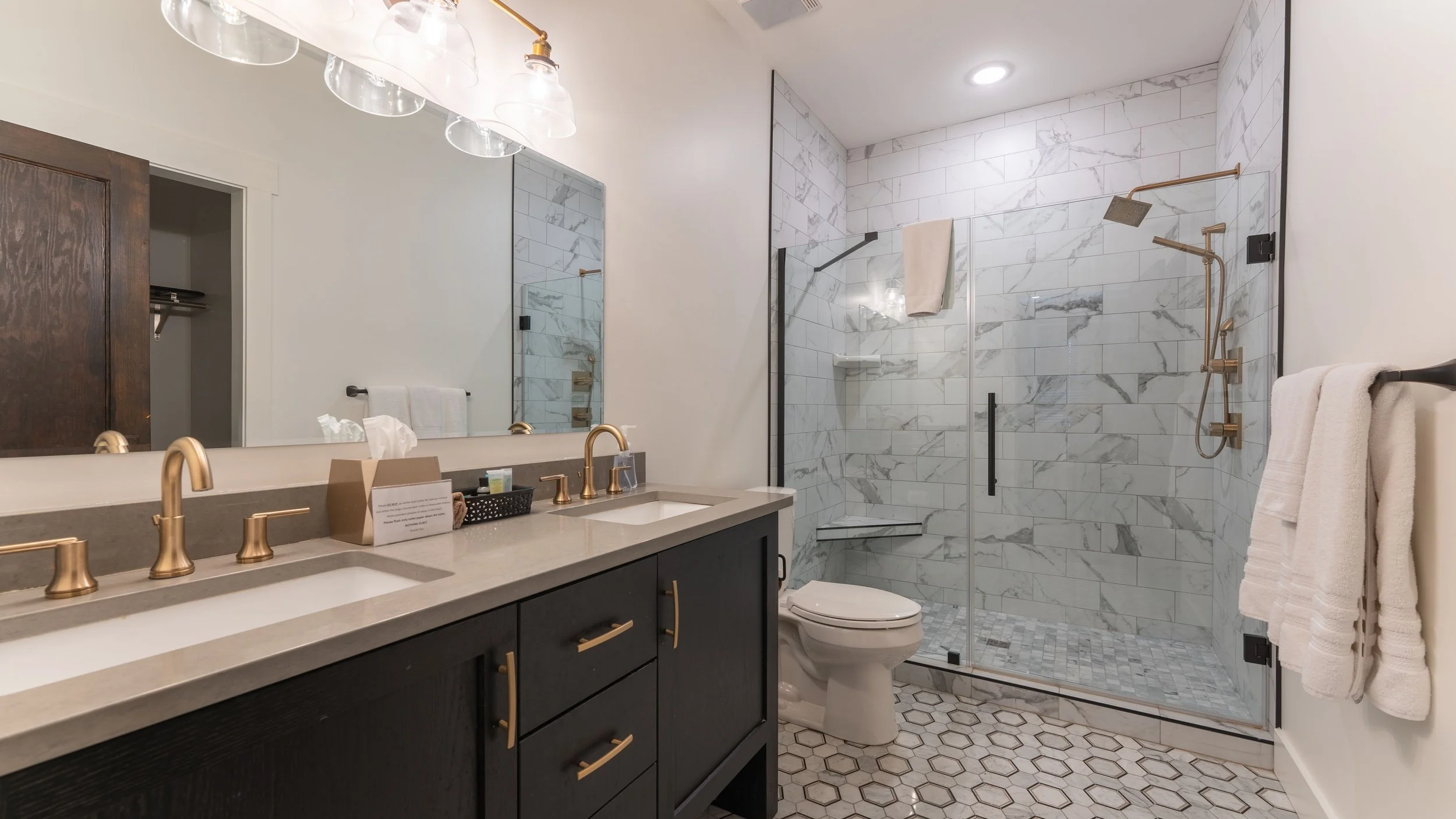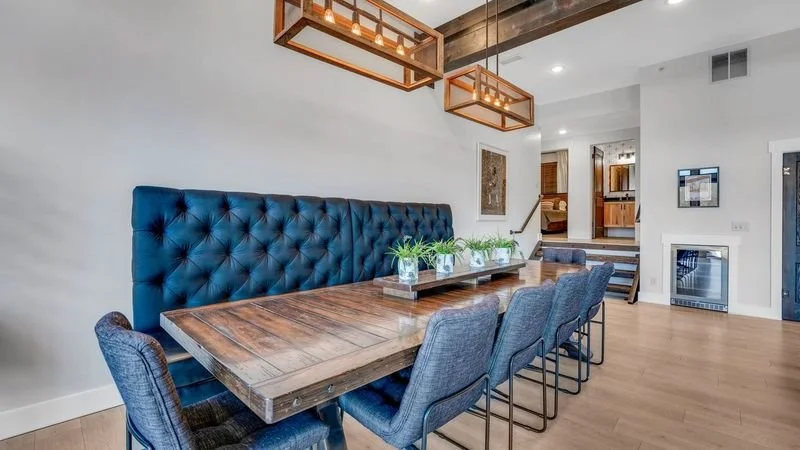 Urban elegance meets lakeside charm with exposed brick, reclaimed wood ceilings, and quartz finishes.